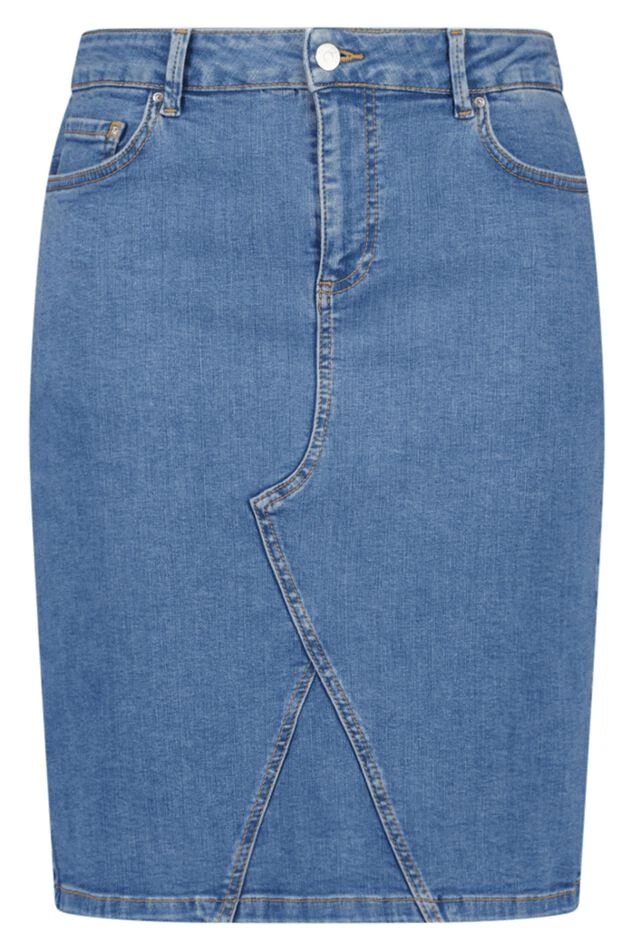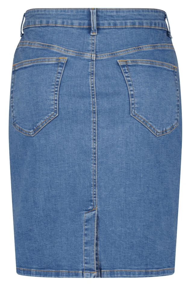 Volg de trend met deze rok! Het item is voorzien een denim look en bevat stretch. Daarnaast heeft de rok aan de voorkant twee zakken en aan de achterkant. De rok is perfect te combineren met onze blouses en jouw zomerlook is af!