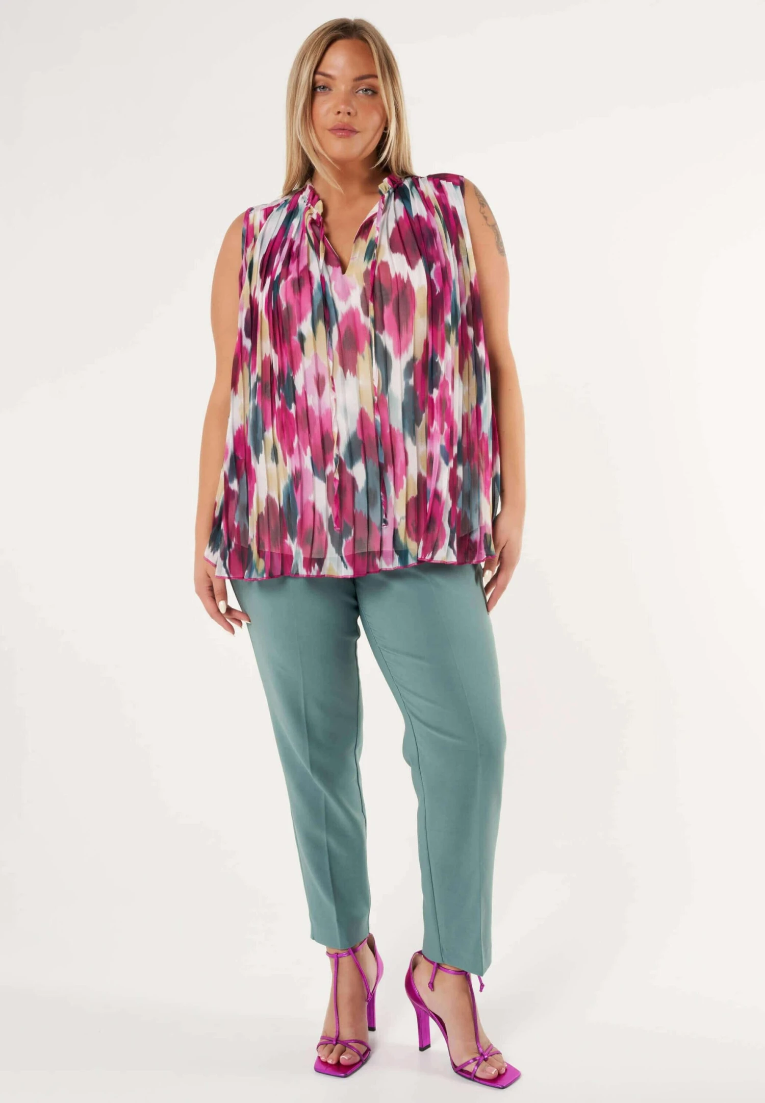Mouwoze Met Plissé – Top – Multi Green